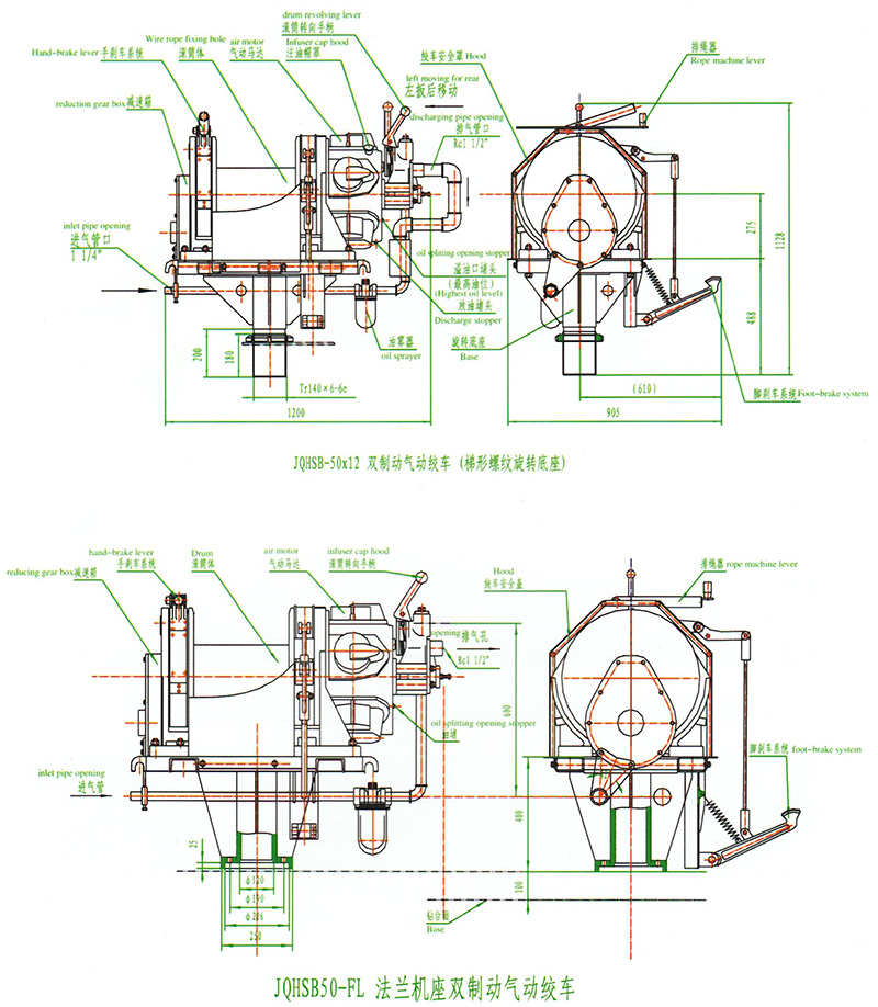 JQHSB50*12 系列 旋轉(zhuǎn)底座雙制動(dòng)氣動(dòng)絞車